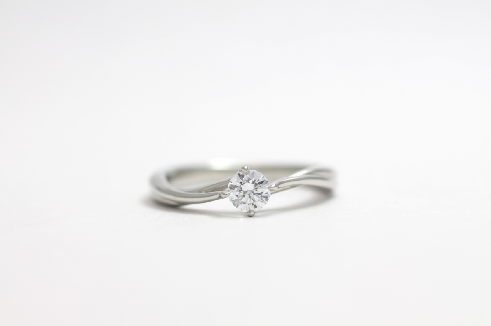 王道の一粒センターダイヤモンドが留まったソリティアタイプのエンゲージリング。