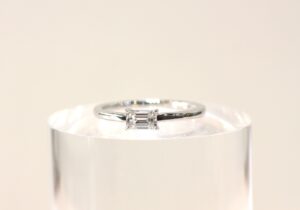 シンプルなフォルムにエメラルドカットのダイヤモンドが目を惹くモア