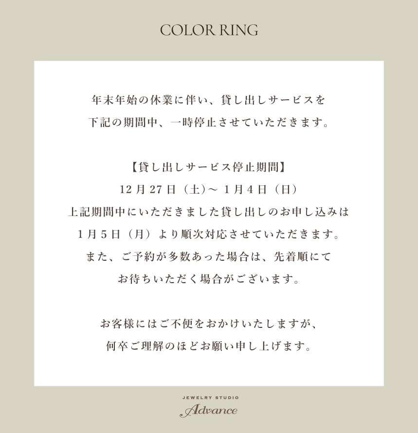 指輪の色やデザイン等ご試着してご確認くださいませ。サイズゲージでサイズもお測りください。貸し出し期間は10日間となります。