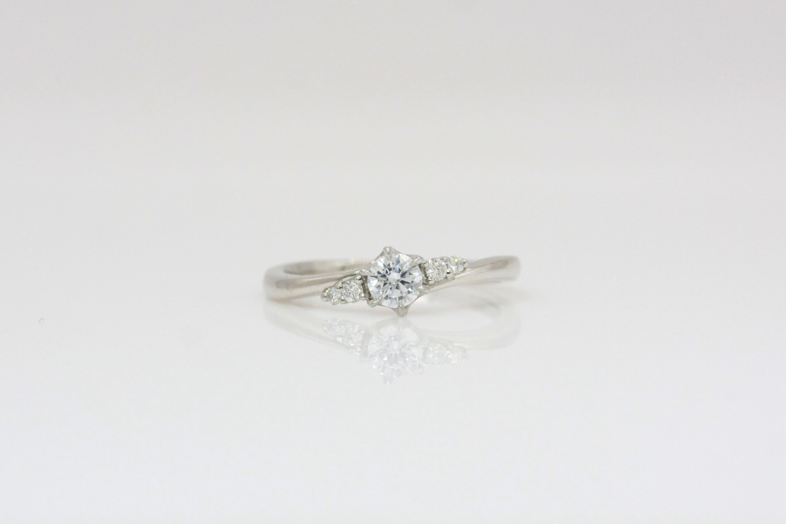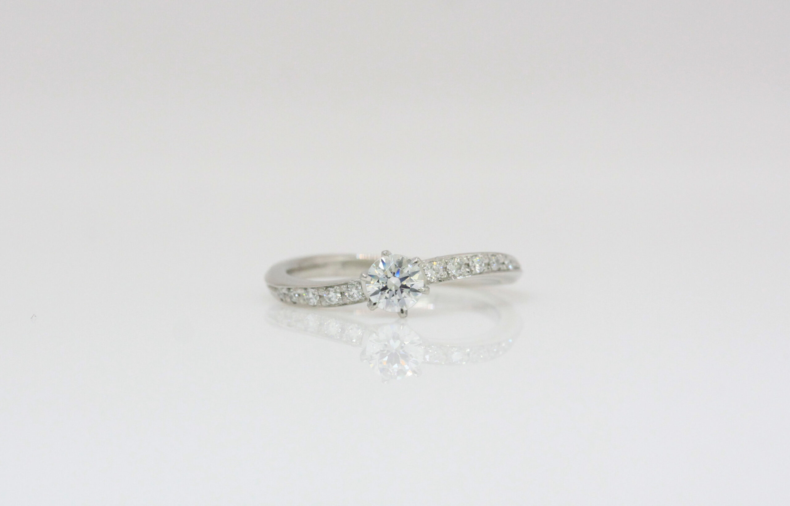 シンプルながらもセンターのダイヤモンドの美しさを引き立てる一本。