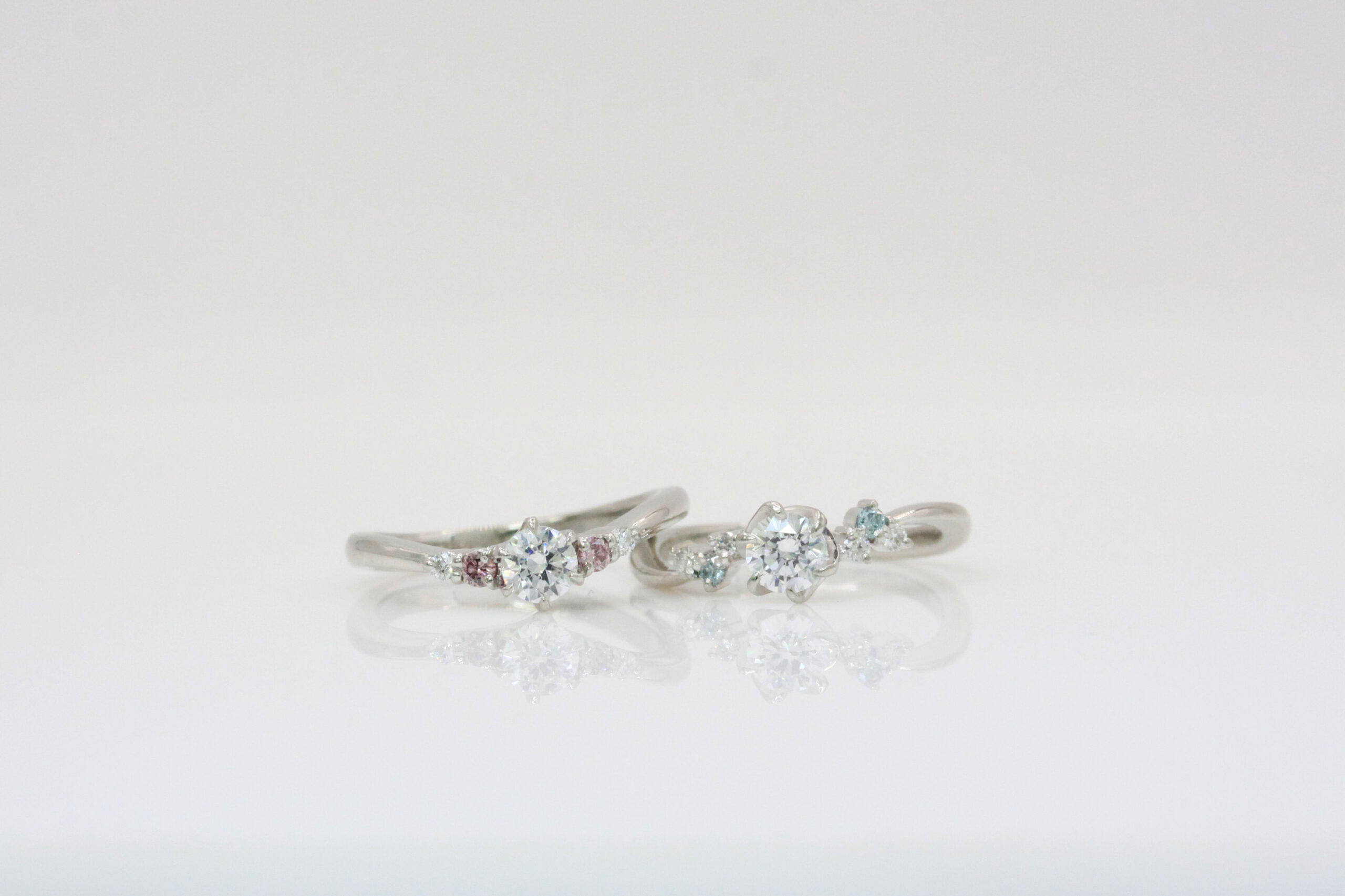 定番のホワイトダイヤモンド以外にも、お相手様の好みやイメージに合わせて、色味を自由に変更できます。