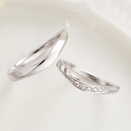 ふたりを優しく包み込むような、柔らかく美しいシフォン。華やかなダイヤモンドの輝きは幸せをいっぱい詰め込んだふたりの未来をイメージ。