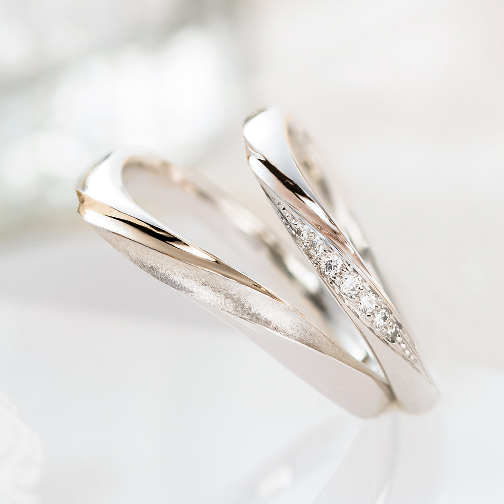 「ふたりを照らす光」をイメージした、コンビネーションリング。 美しいゴールドのラインが、いつでも手元を明るく見せてくれる。