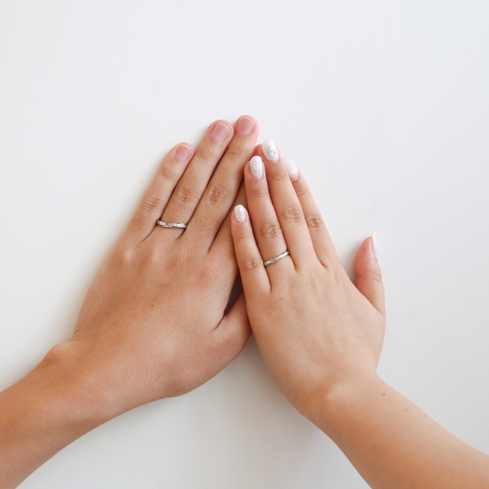 私の指輪はあえてダイヤモンドをつけずに彼とお揃いの雰囲気に仕上げてもらいました。