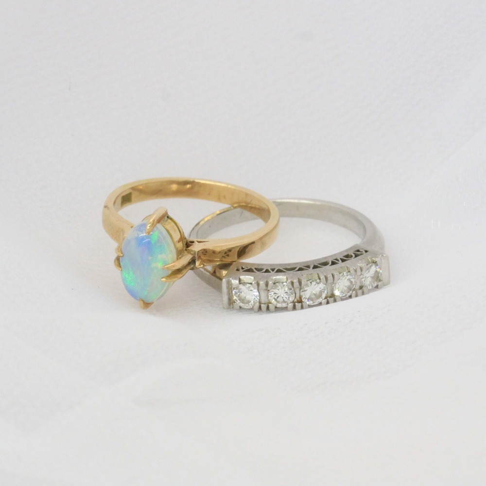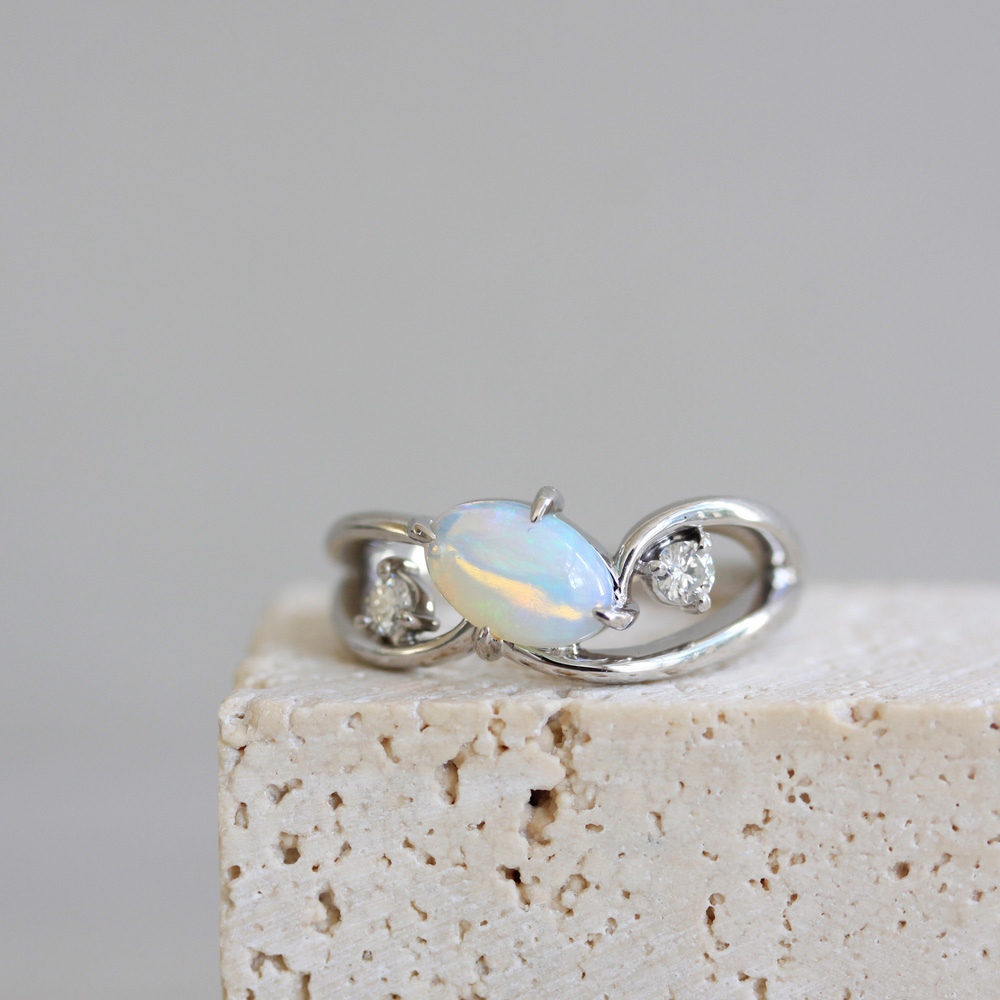 オパールの美しい輝きを大切にしつつ、ダイヤモンドの配置にも細やかなこだわりを込めています。