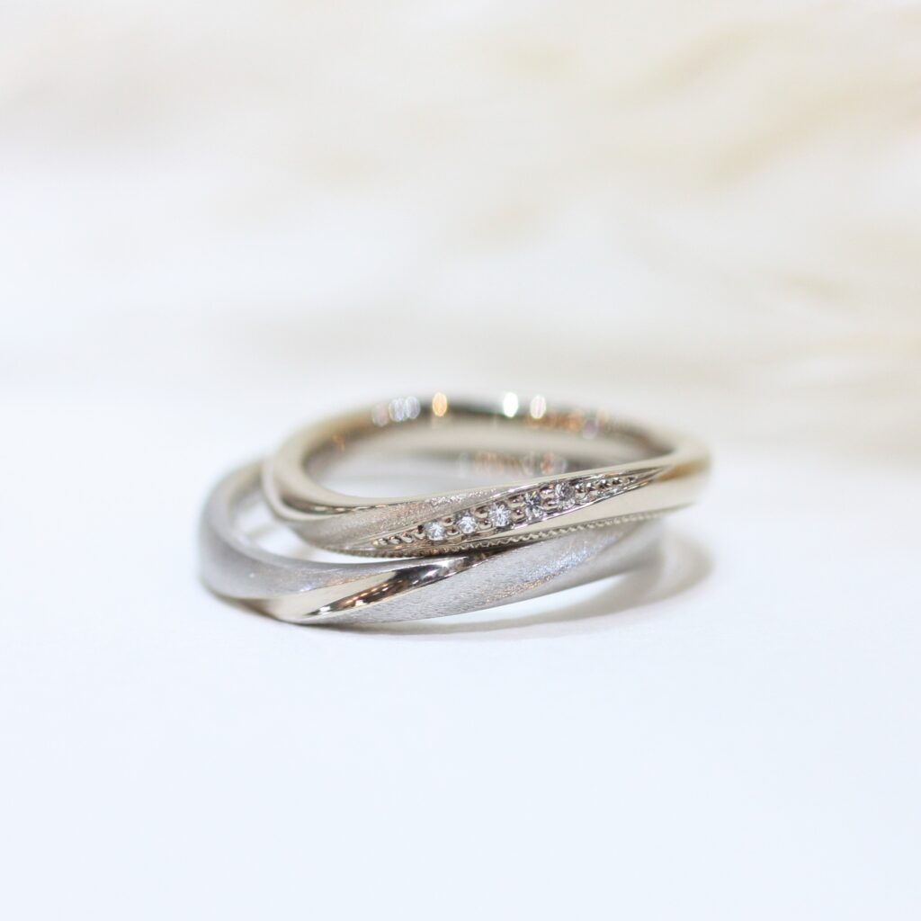 また、ふたりの指輪のペア感もこだわってお気に入りのデザインになりました。